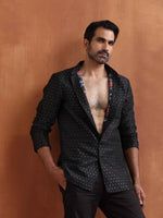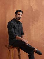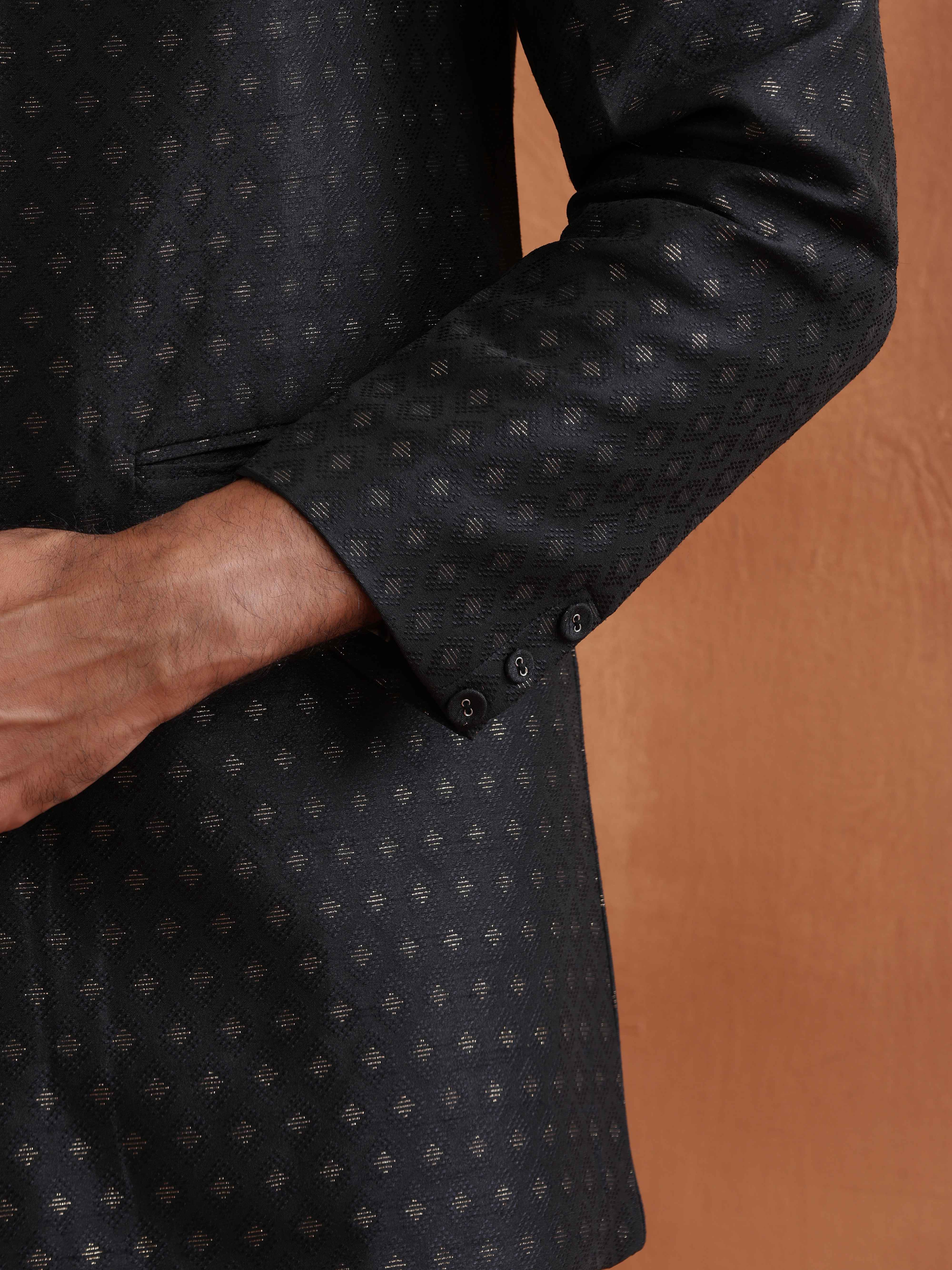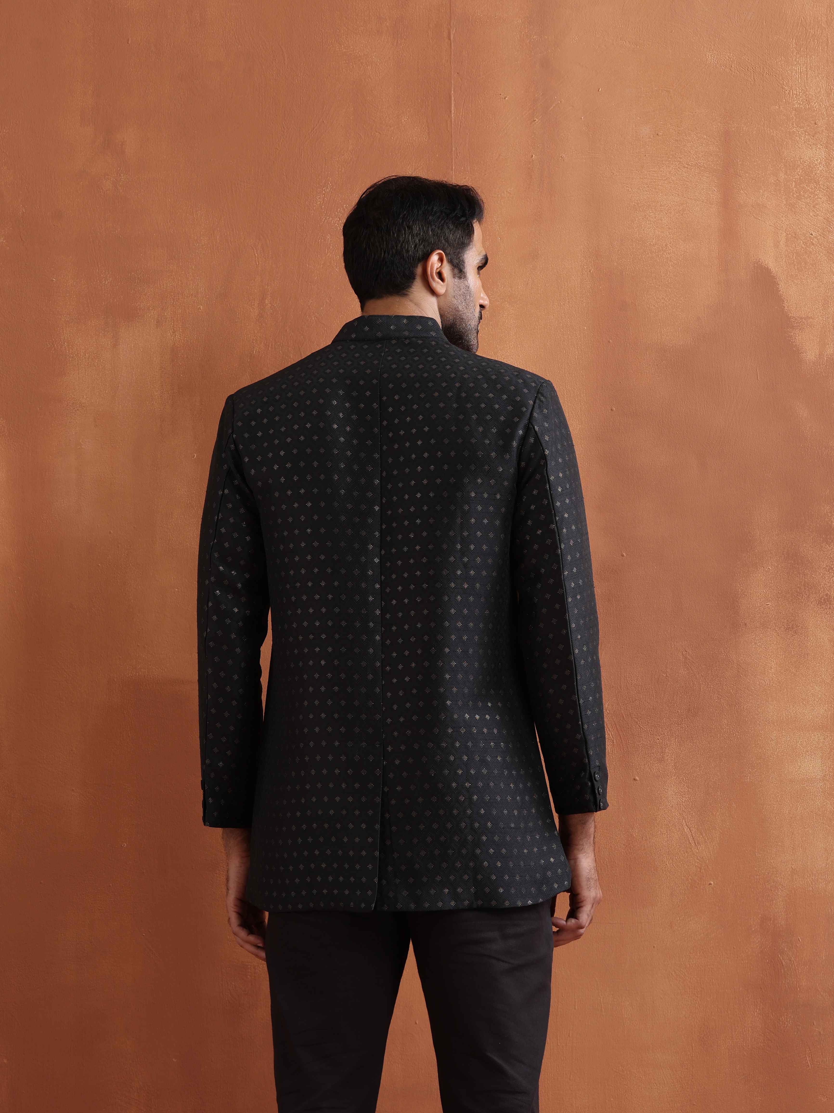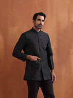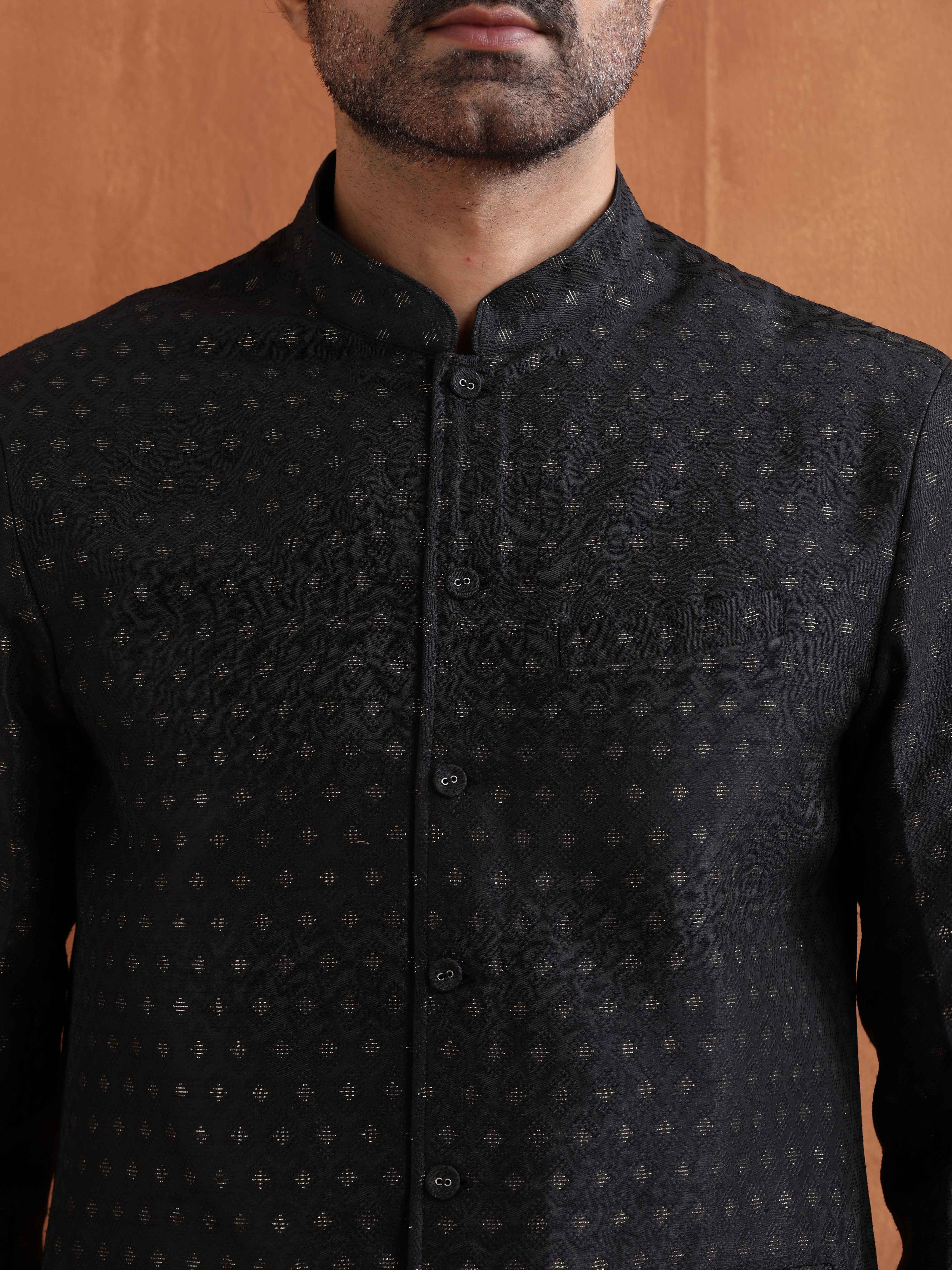 trueBrowns Men's Black Chanderi Long Jacket - S