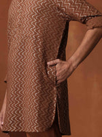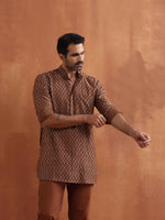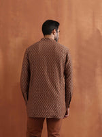 Upgrade your festive wardrobe with this brown cotton dobby short kurta.