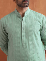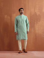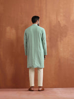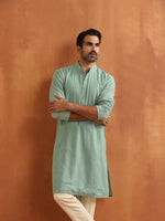 trueBrowns Men's Green Cotton Dobby Kurta - S