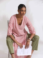 trueBrowns Red Cotton Stripe Straight Kurta SetDescription Elevate your style with this stripe cotton kurta with green cotton pants, featuring a gl...