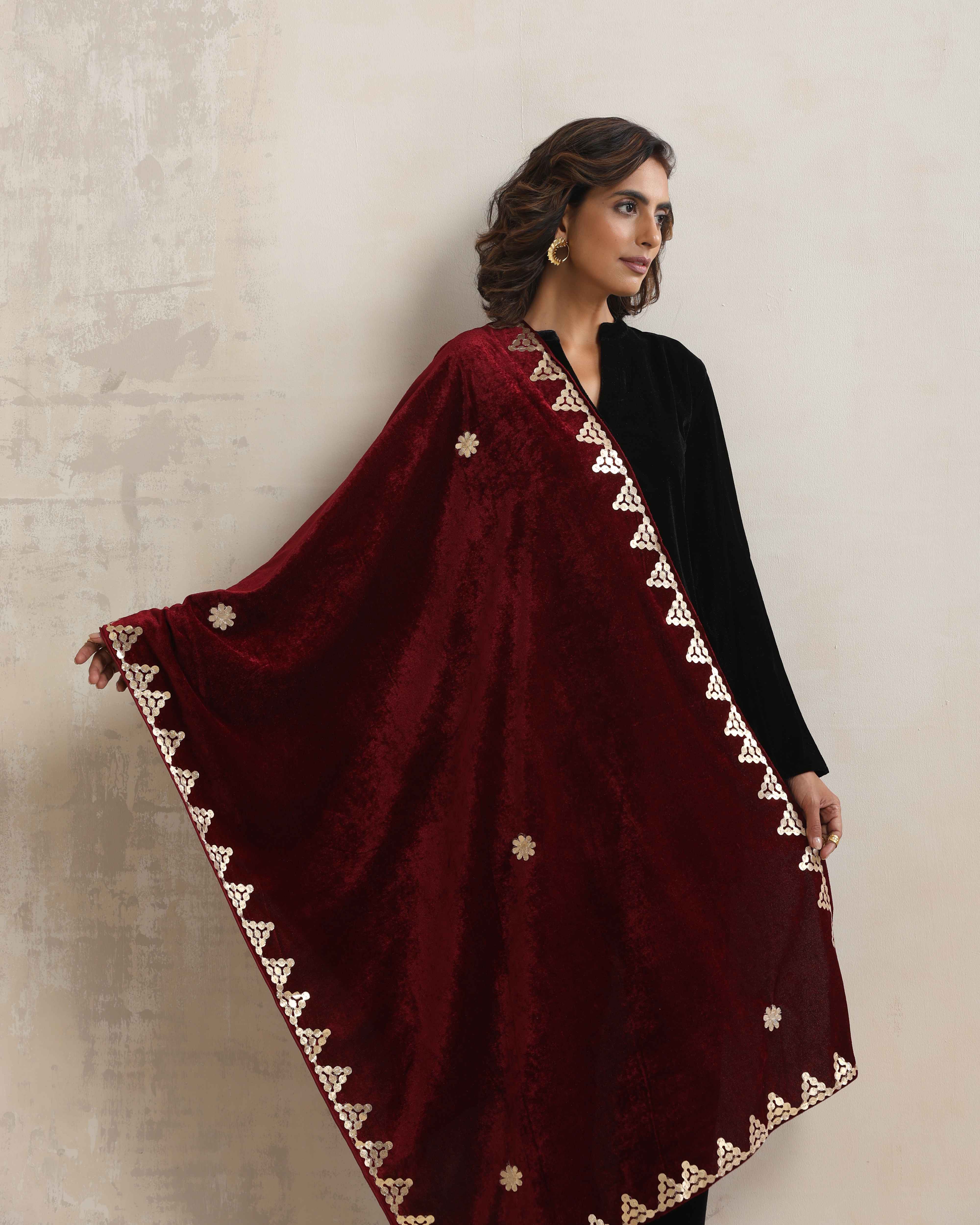 trueBrowns Maroon Velvet Gota Patti Stole - Distacart