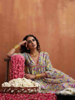 trueBrowns Yellow Print Anarkali Kurta Co-ord SetDescription Elevate your style with this yellow floral print anarkali kurta paired with pink pant ...