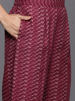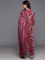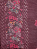 Maroon Floral Printed Zari Embroidered Scalloped V- Neck, Three Quarter Sleeves Straight Kurta With Side Slit Paired With Printed Tonal Bottom And Dupatta