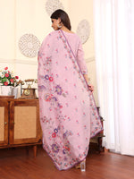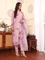 Pure Hand Kanth Embroidered, V Neck, Three Quarter Sleeves, Straight Kurta With Side Slit, Paired With Tonal Bottom And Embroidered Dupatta