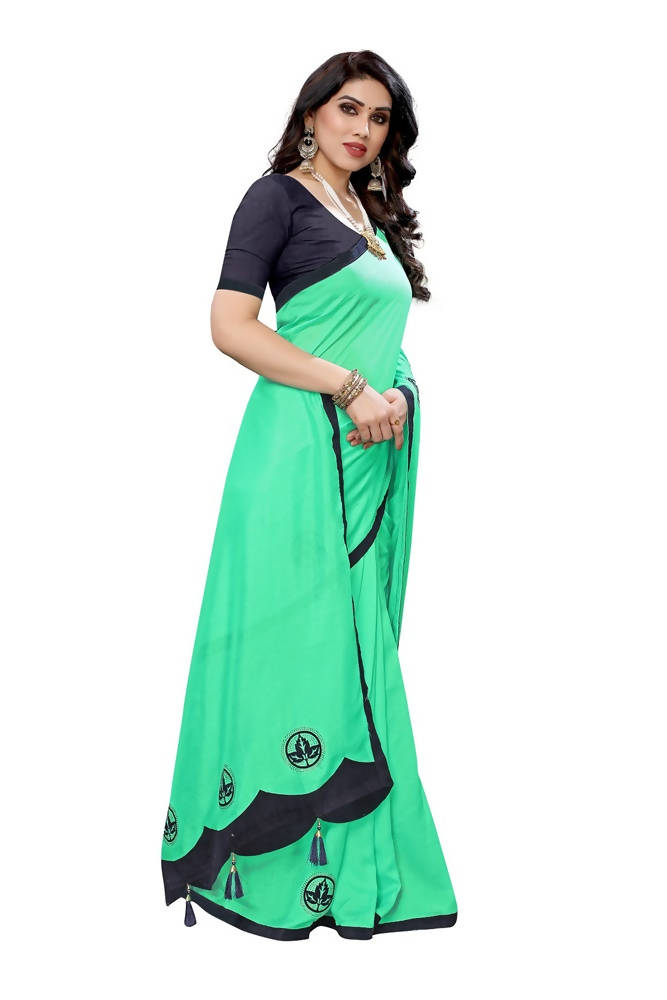 Vamika Designer Green Dola Silk SareeWork: DesignerSaree Fabric Type: Dola SilkBlouse Fabric: Banglori SilkSaree Length: 5.50 MtrBlouse: Yes (0.80...