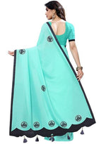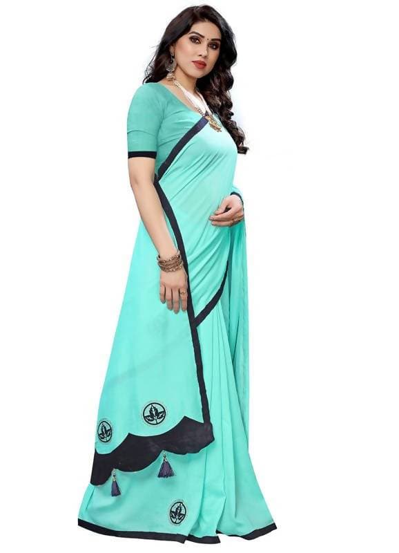 Vamika Designer Rama Green Georgette Saree (TSUNAMI RAMA):Specifications: Work: Designer Base Fabric: Georgette Fabric Saree: Georgette Fabric Blo...
