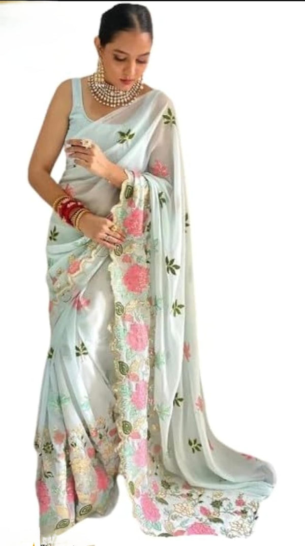 Vamika Embroidery Sky Blue Georgette Bollywood Saree