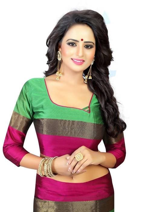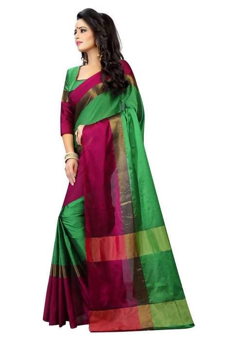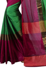 Vamika Green Cotton Silk Weaving Saree(Shreeji Parrot Pink)