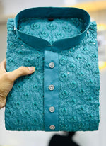 Prazu Fashion Turquoise Rayon Embrodered Kurta With PajamaAbout the Product: GENDER : male Colour : Turquoise Work/Pattern : Embroidered Fabric : R...