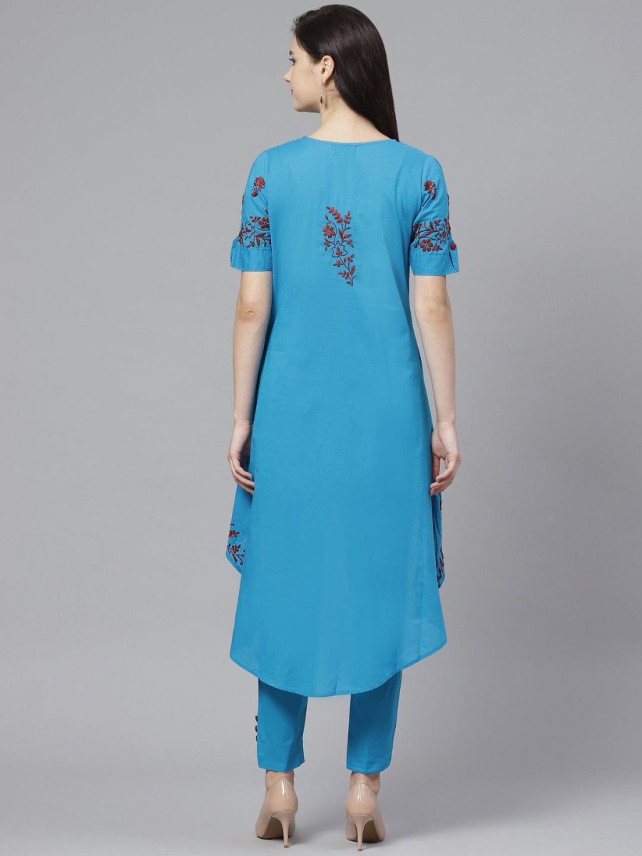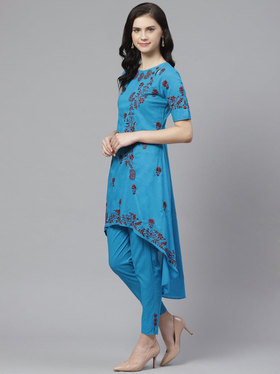 Showcase your unique style in this lively decorated blue kurta set from ADA. Accessorize this kurta set with sparkly bangles and heels for an elegant look.