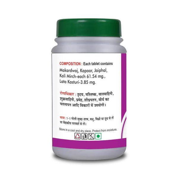 Description: Makardhwaj Bati is an herbomineral formulation used in Ayurveda for its aphrodisiac and rejuvenating properties.