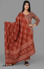 Red Paisley Print Cotton Casual Kurta Suit Set By KAAJH. It Has a Elegant Work On The Front Panel Which Makes This Kurta Set Classy And Luxurious. You Can Choose This Kurta Set For Your Casual Gatherings And Events. KAAJH's collection makes it easy for you to transition from an everyday look into the look of royalty without effort and with just one outfit yet trendy and affordable for every woman.