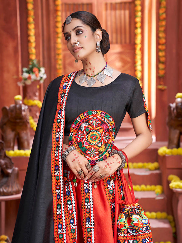 Myra Red Art Silk Gamthi Work Designer LehengaRed Art Silk Gamthi Work Designer Lehenga features a art silk blouse with art silk lehenga and dupatt...