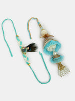 NVR Women & Men Set of 2 Blue Krishna Pearl Bhaiya Bhabhi Rakhi With Roli Chawal & Chocolate Style Note: Celebrate Raksha Bandhan with divi...