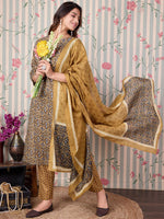 Ode by House of Pataudi Floral Printed Regular Pure Cotton Kurta with Trousers & Dupatta Product Details Brown & white printed Kurta wit...