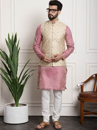 Pink woven design Kurta with Churidar