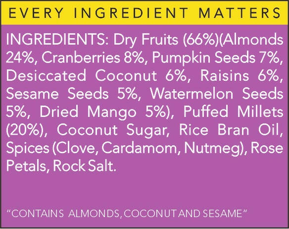 It is from our second series launch and was created for the love of Indian flavours and Indian superfoods.  It has 66% nuts, seeds and fruits by weight, which makes it a truly health-boosting breakfast.