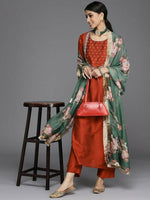 Varanga Women Maroon Embroidered Yoke Design Kurta with Trousers & DupattaDescription: Content - 1 Kurta, 1 Trouser & 1 Dupatta Fabric -Art...