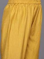 Yellow Round Neck, Three Quarter Sleeves, Yoke And Sleeve Hem Embroidered With Thread And Mirror, Straight Kurta Paired With Tonal Solid Bottom And Tonal Sequins Embroidered Dupatta
