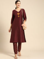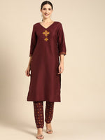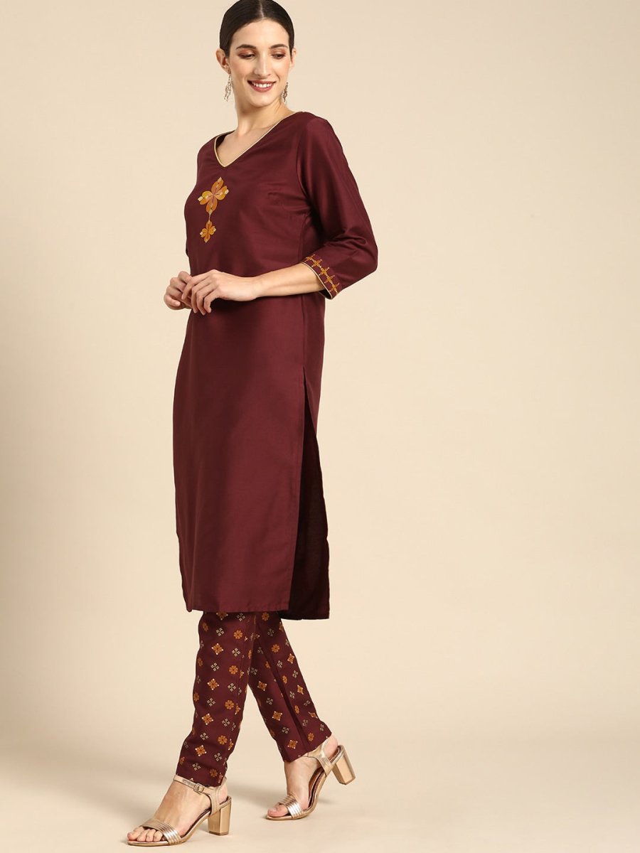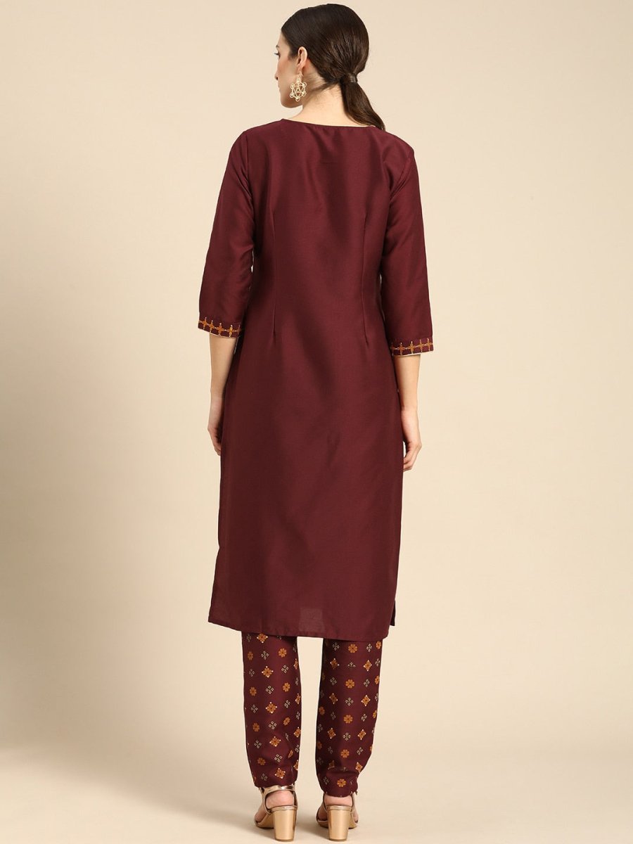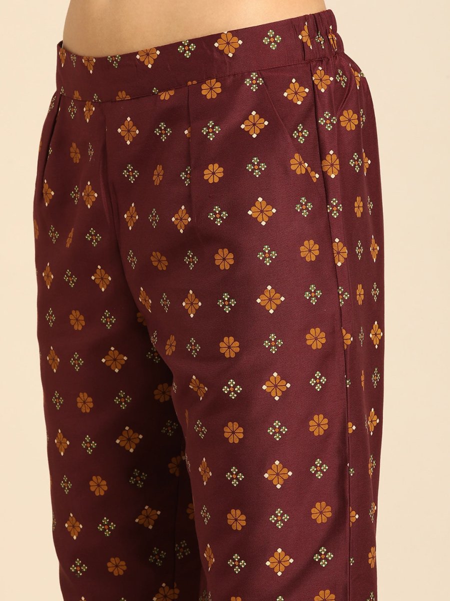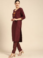 Maroon yoke design Kurta with Trousers