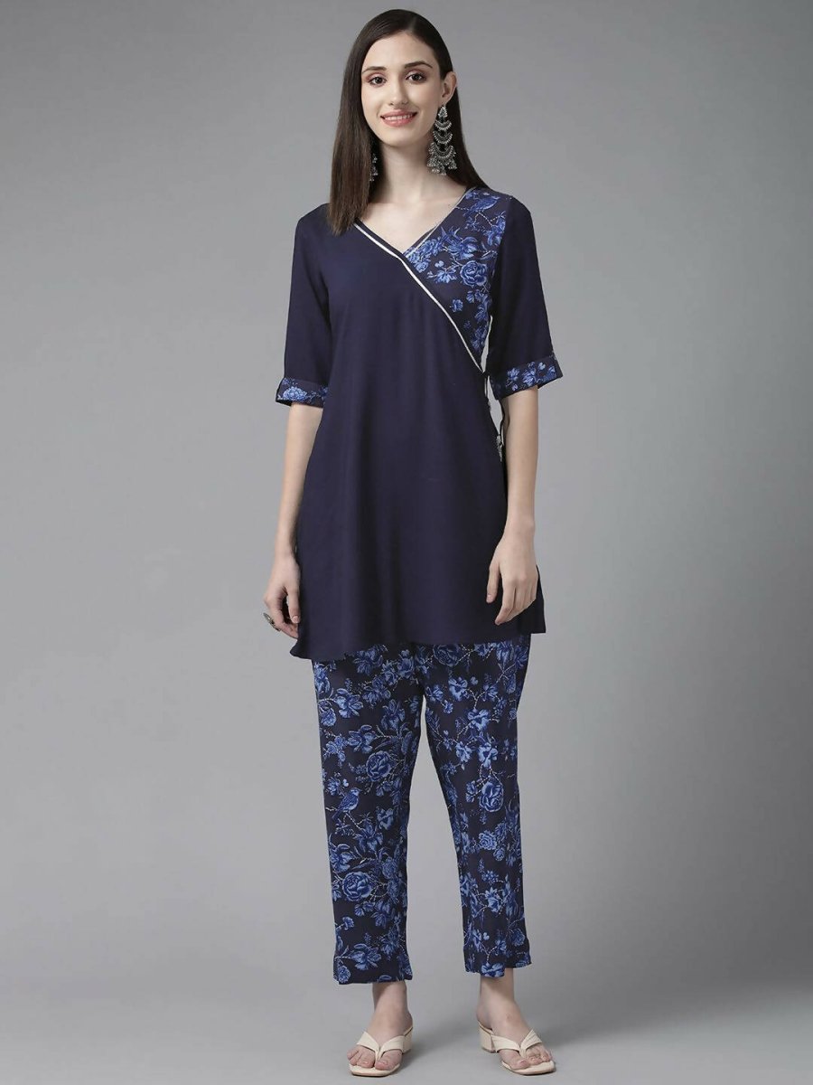 Disclaimer: The colors, appearing on your screen may differ slightly from the actual product. Let your Women flaunt her fashionable side with this clothing set from Ahalyaa. Comfy and stylish, it will make her look even more adorable.