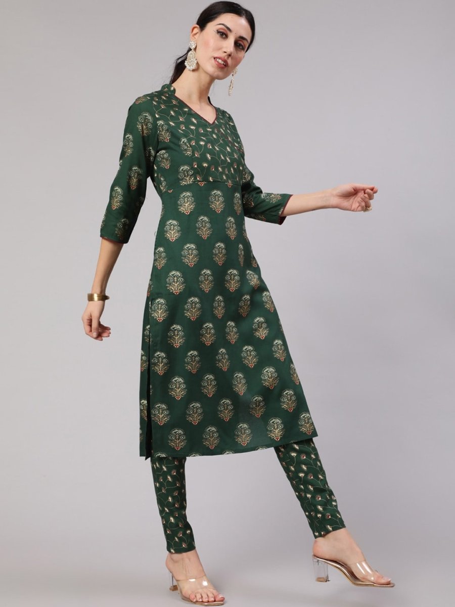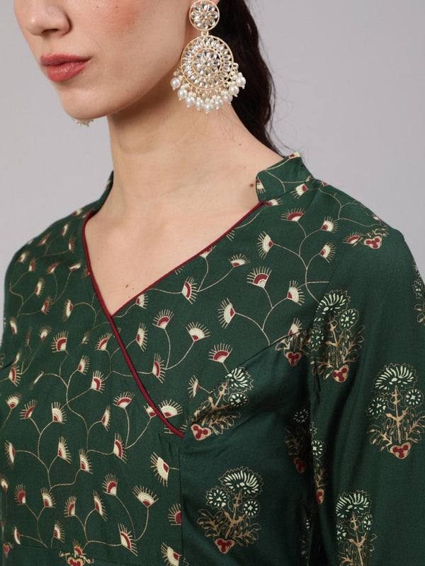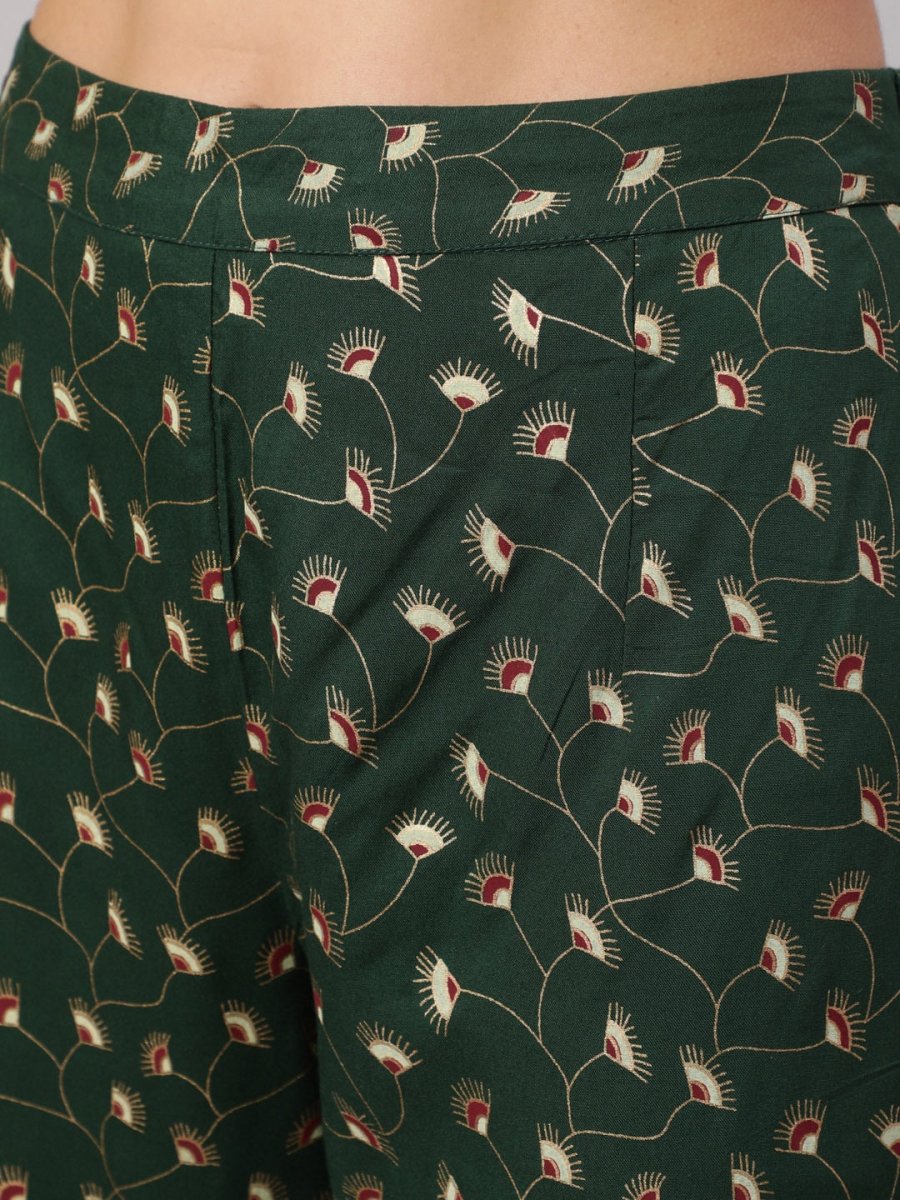 Green printed Kurta with Trousers