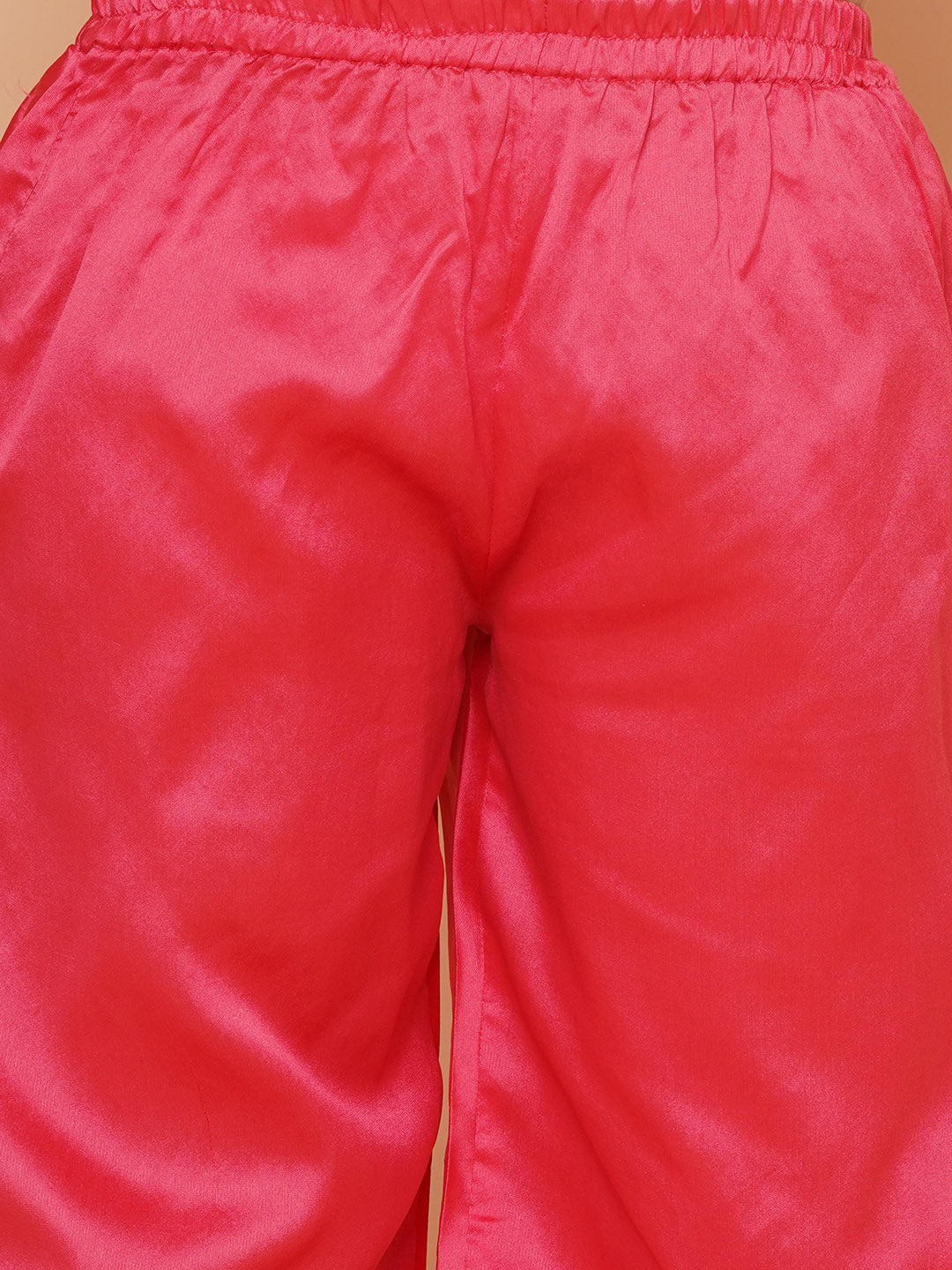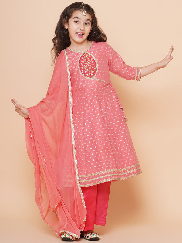 Girls Peach Self design Booti Angrakha Gotta Patti Kurta & with Trouser & Dupatta for Kids - Bhama