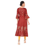 Aniyah Cotton Gold Print Flared Anarkali Kurta Maroon (AN-162K) - S