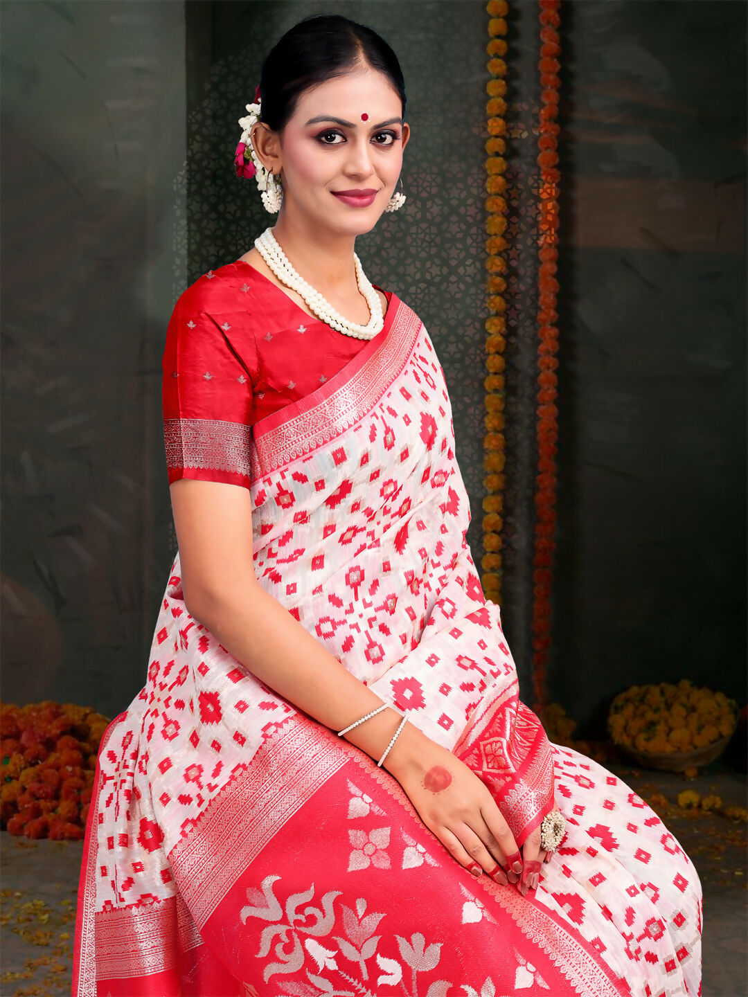 Astita Devistuti Red White Linen Cotton Saree Color : Red & White Saree Fabrics : Linen Cotton Blouse Fabrics : Linen Cotton Saree Length :...