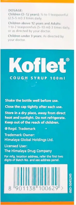 Himalaya Herbals Koflet Cough Syrup Online Form: SyrupType: Herbal blendCountry of Origin: India Koflet Cough Syrup Description: Himalaya Koflet Sy...