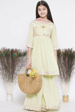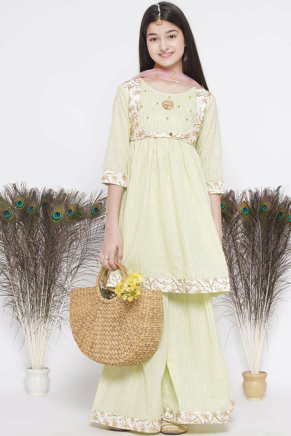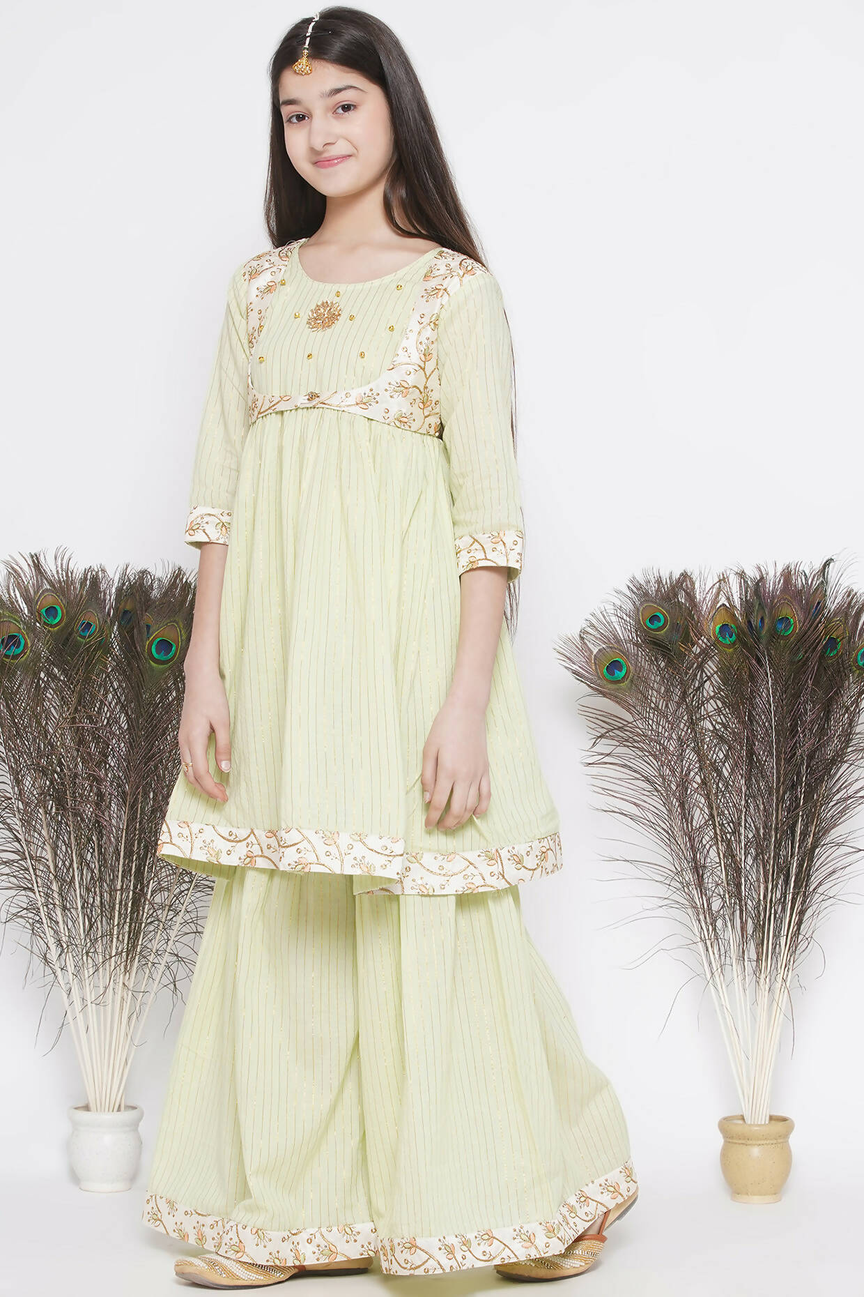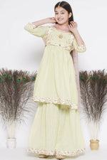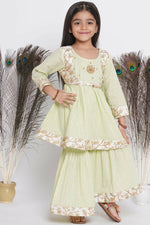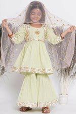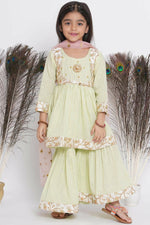 Little Bansi Floral Embroidery Jacket With Cotton Lurex Frock Sharara And Dupatta With Ghungroo Handwork - Bottle Green Additional Information: ...