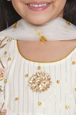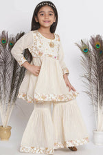 Little Bansi Floral Embroidery Jacket With Cotton Lurex Frock Sharara And Dupatta With Ghungroo Handwork - Cream Additional Information: Color...