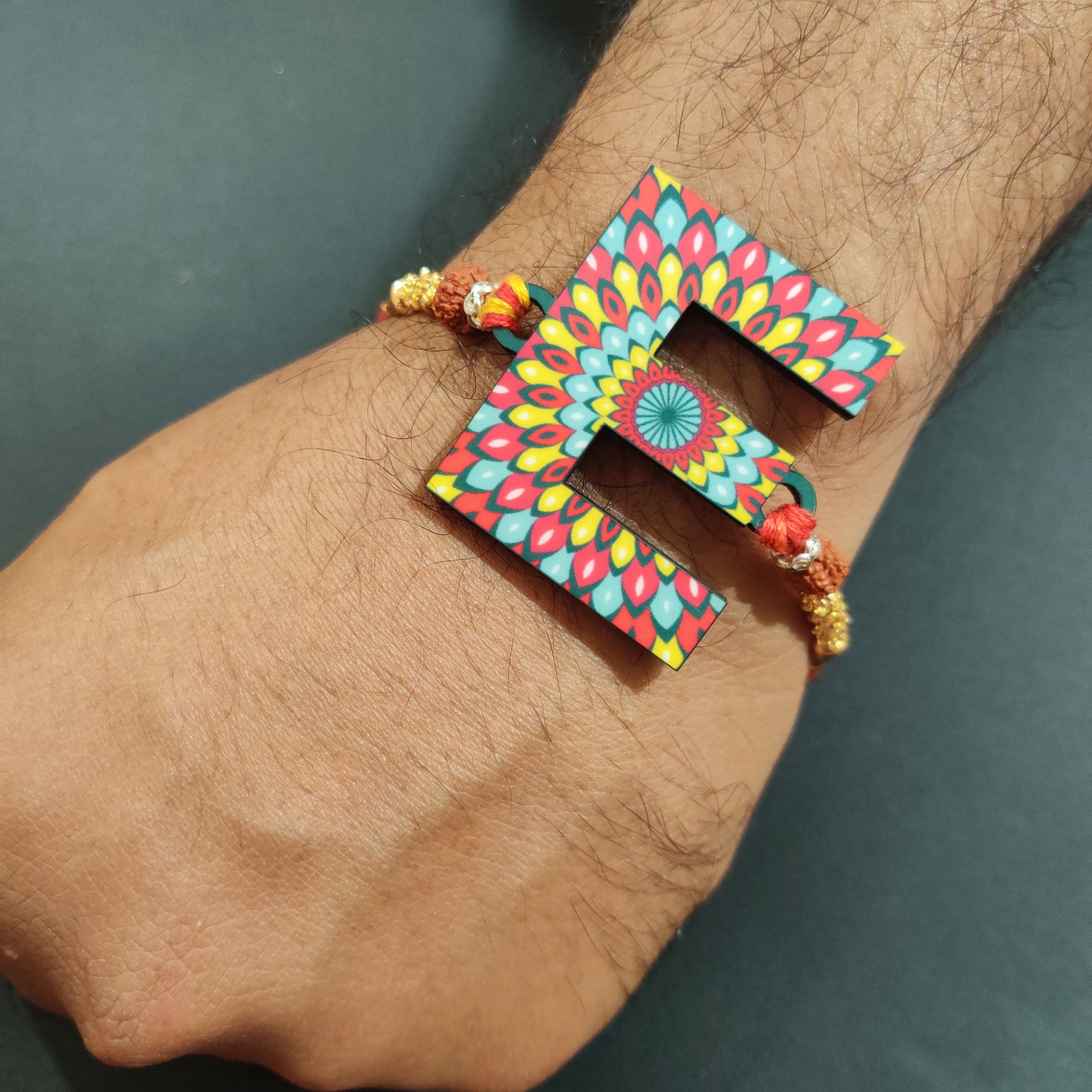 Indianvibez Alphabet E Wooden Rakhi - Kids Rakhi