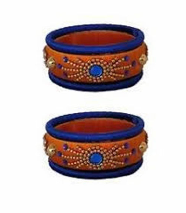 Orange and Navy Blue Silk Threaded Bangles Set of 2 - 2 - 4
