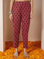 Janasya Dark Cotton Ikkat Anarkali Kurta Set