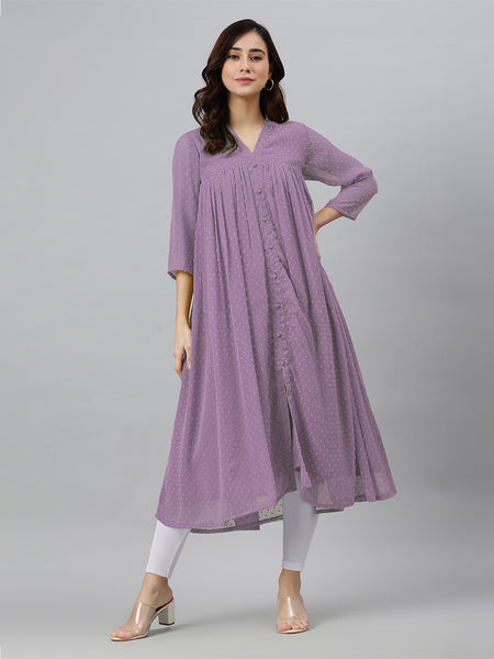 Janasya Light Dobby Chiffon Solid Flared Kurta - XS