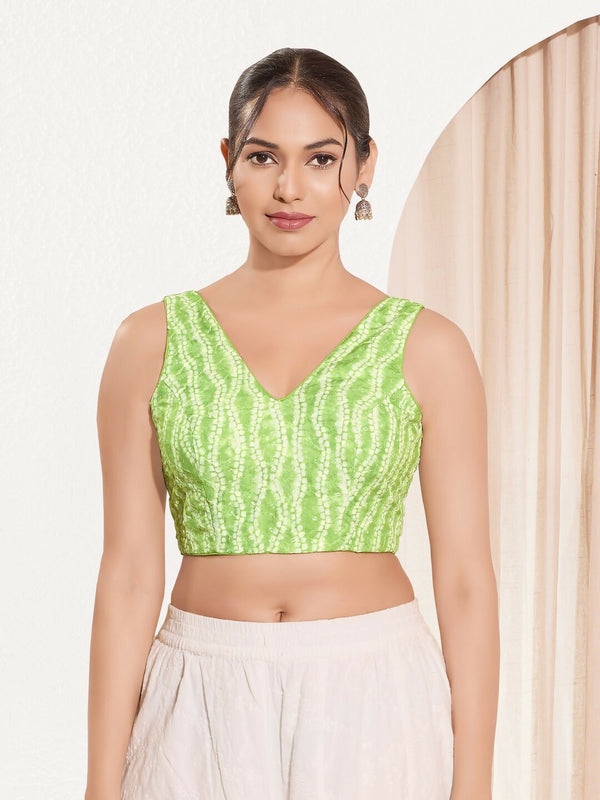 Joban Fashion Pista Green Viscose Rayon Padded Blouse With V Neck Sleeveless