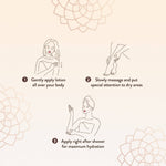 • Apply lotion gently all over the body, paying special attention to dry areas and massage slowly.