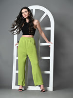 Myshka Women's Solid Ribbed High-Rise Wide Leg Casual Trousers in Green Color Pack Contains: 1 Trousers Top Length of Kurta: 38 inch Top Color:...