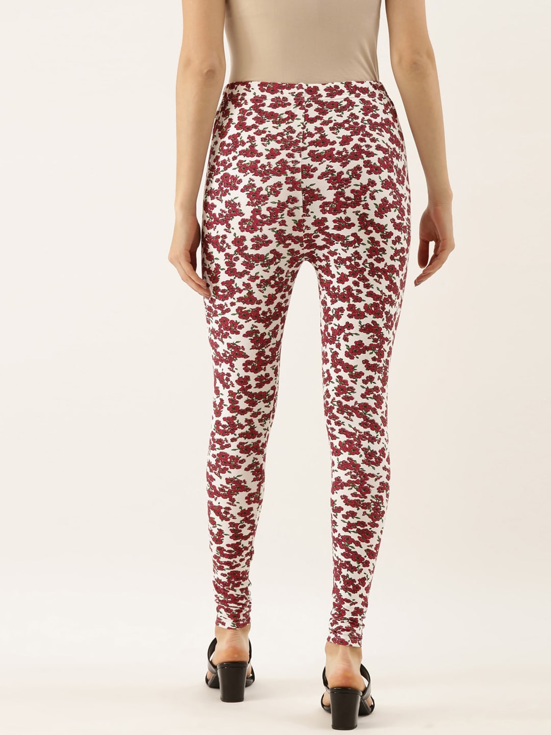 Souchii White & Red Printed Slim-Fit Ankle-Length Leggings - Distacart