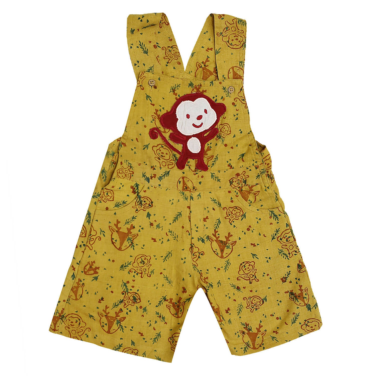 Mhyssa Yellow Dungaree With Round Neck Half Sleeves Maroon Shirt SetAbout the Product: Dungaree style Romper features an embroidered monkey patch a...