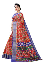 Vamika Red and Blue Linen Jari Border Saree Online At Low Price