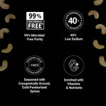 This deliciously healthy range of roasted Cashew is seasoned with cryogenically ground spices to give you more flavor, nutrition, and crunch in every bite.