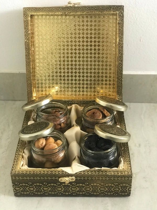 SK Mithaii Assorted Dry Fruit Gift Box | Almond | Figs | Apricot | Black Resins | 4 Jars - Gift Box
