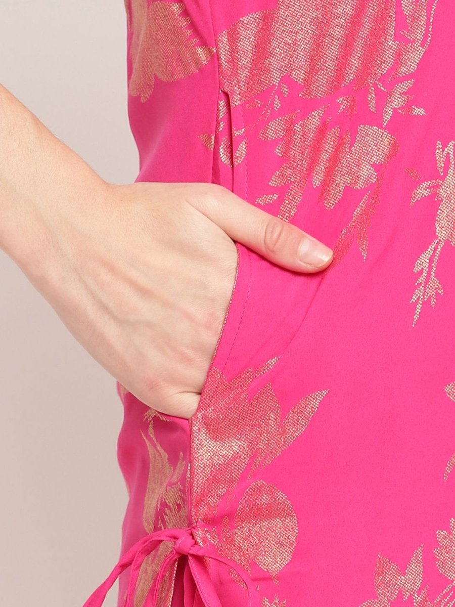 Ahalyaa Dark Pink Crepe Printed Salwar Suit Sets With Dupatta This is Dark Pink Kurta Pant Set Present by Ahalyaa having Gold Print Work on rayon ...