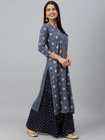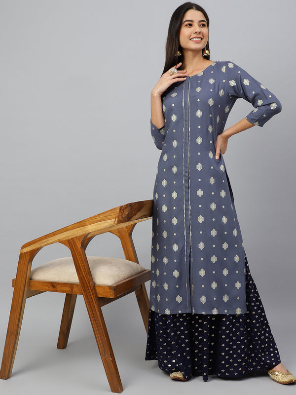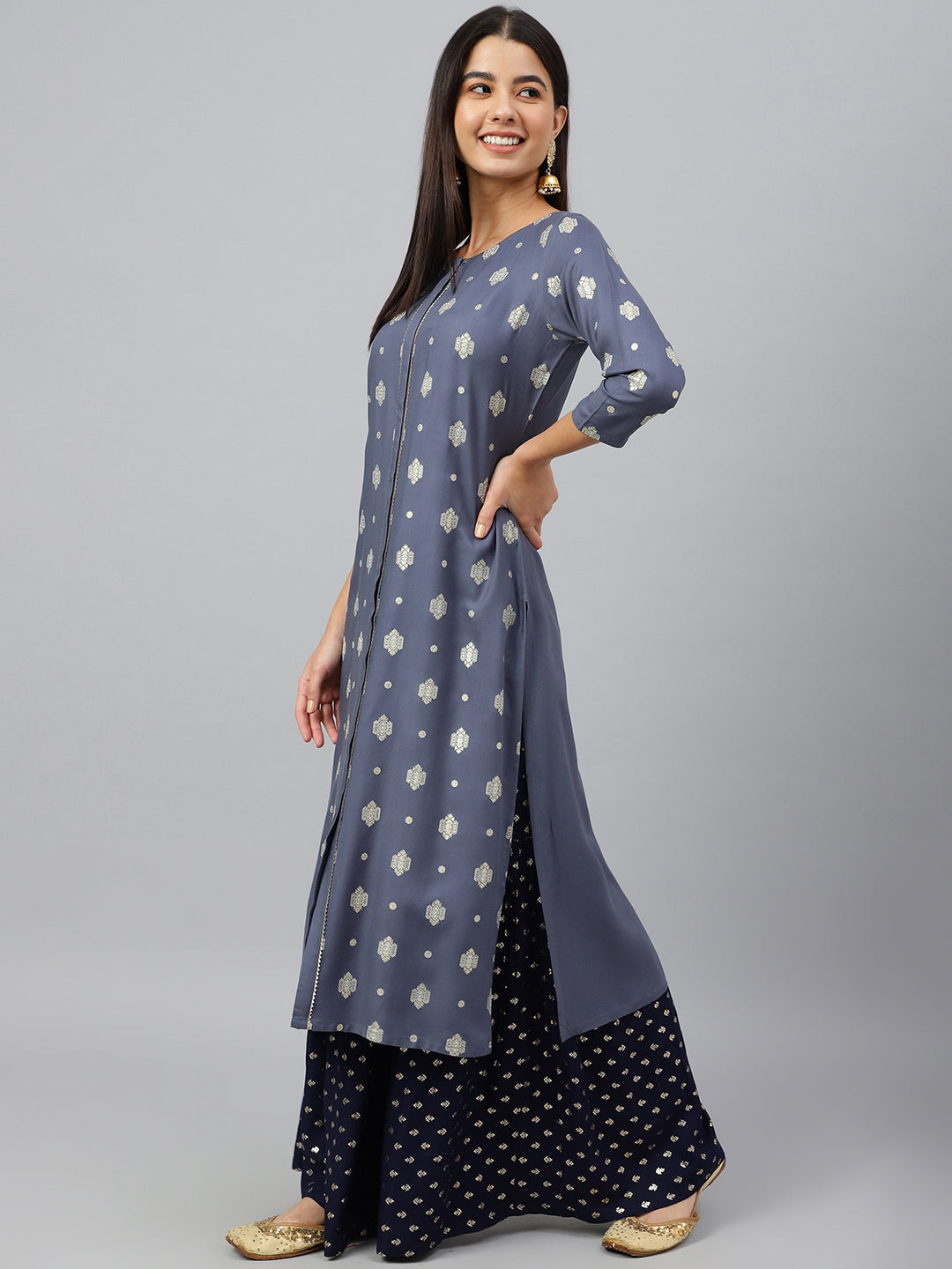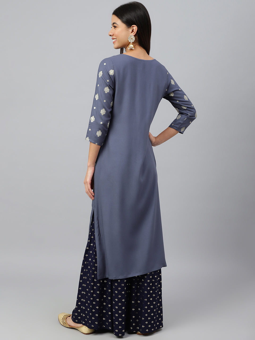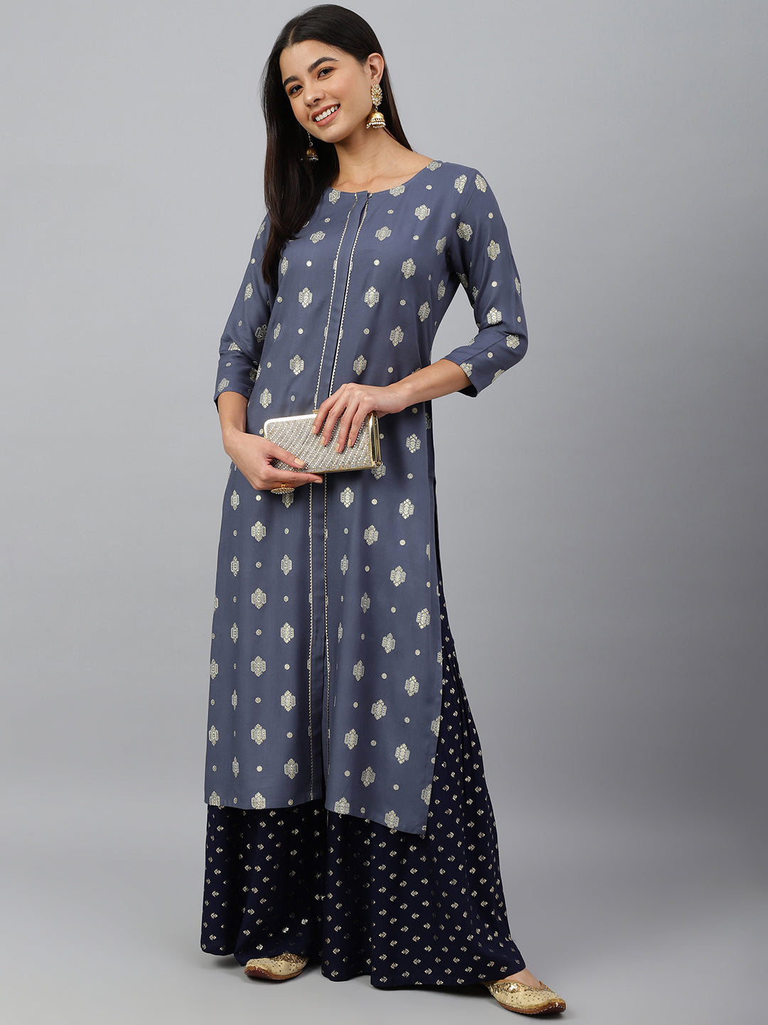 Janasya Women's Grey Rayon Ethnic motifs Festive Straight Kurta Color: Grey Fabric: Rayon Work/Pattern: Ethnic motifs Occasion: Festive S...