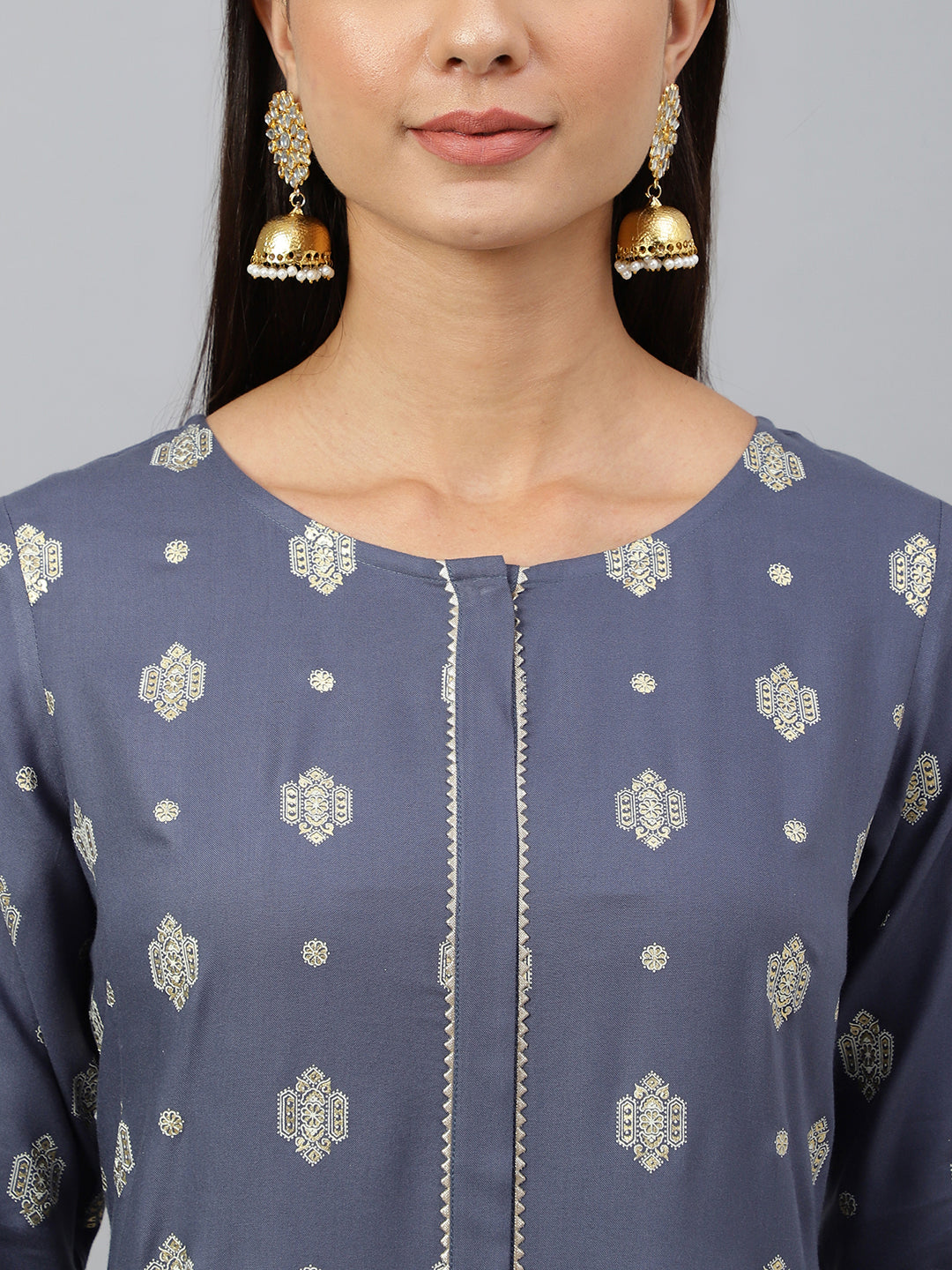 Janasya Women's Grey Rayon Ethnic motifs Festive Straight Kurta