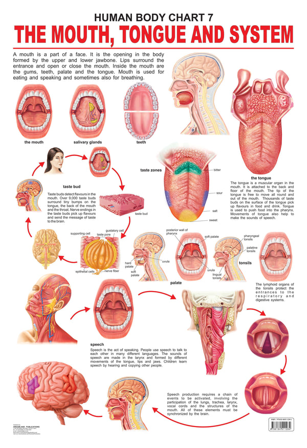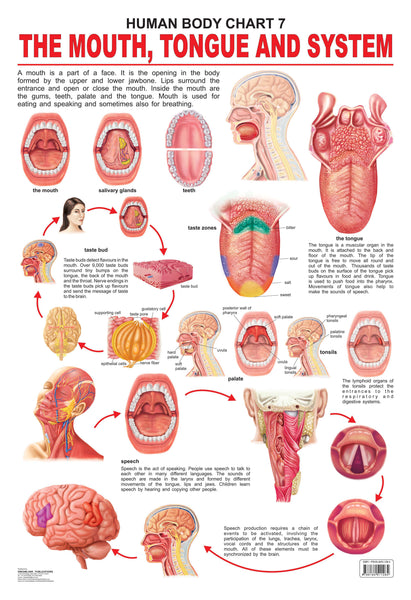 The mouth – a part of the face is used for eating, speaking, and sometimes breathing too. ‘The Mouth, Tongue, and Speech’ – this wall chart includes detailed images of the mouth, tongue, and speech organs, and more related parts with all important information in an easy-to-read and simple-to-understand text.
