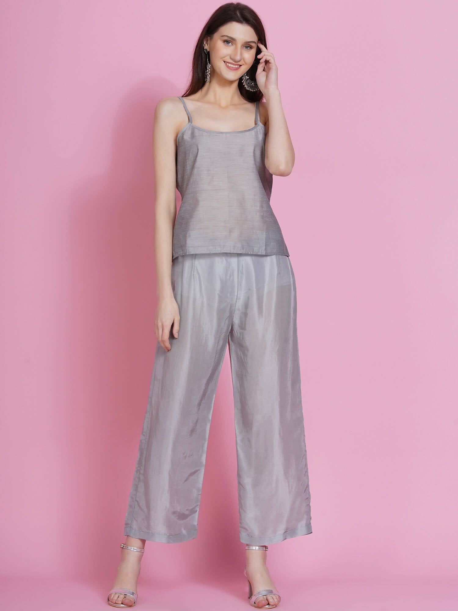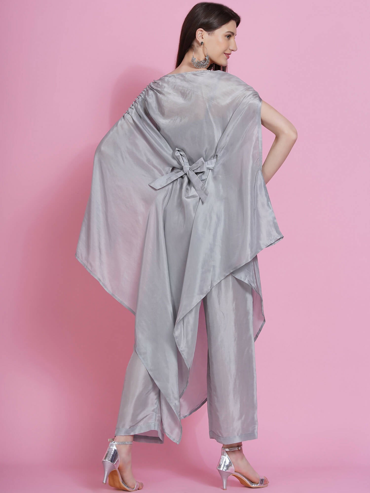 Women Republic Grey Opara Silk Kurta With Belt And Palazzo - Distacart