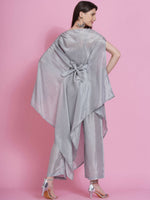 Women Republic Grey Opara Silk Kurta With Belt And Palazzo